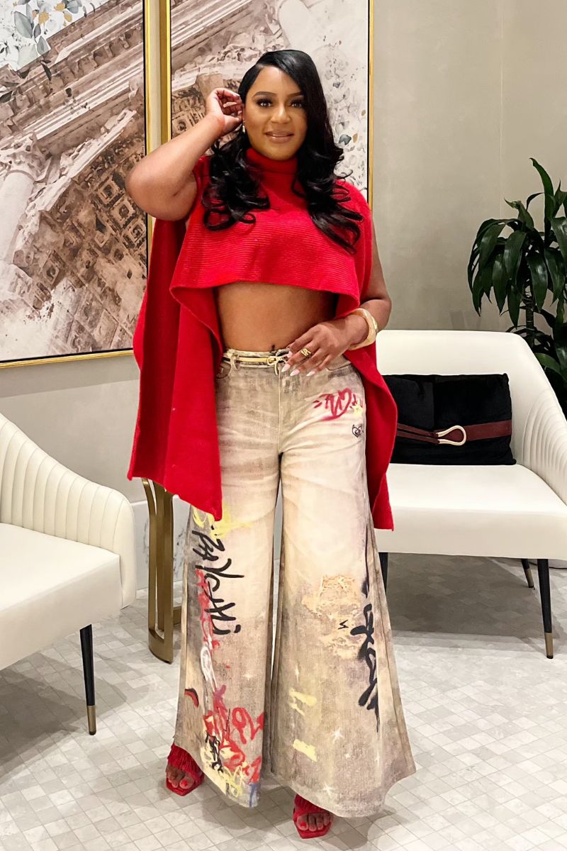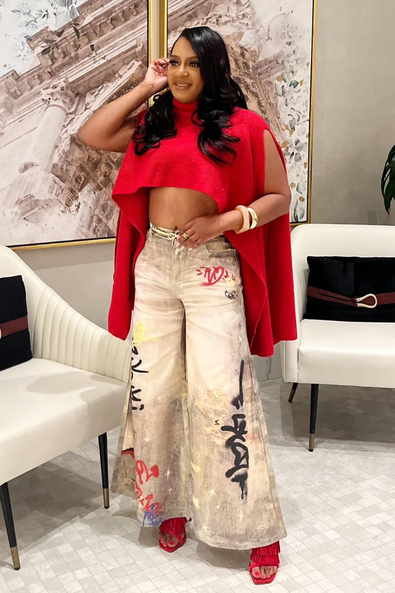 Make a bold statement with these one-of-a-kind jeans. These jeans are perfect for the fashion-forward individual who wants to express their creativity and stand out from the crowd.